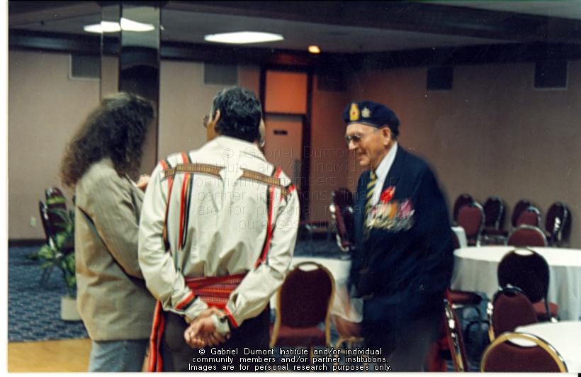 | Description: | Louis Dorion and Angie Dreaver at the book launch of "Remembrances: Interviews with Métis Veterans" in Saskatoon in 1997. |