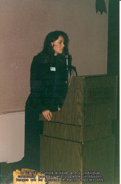 | Description: | Leah Dorion speaking in the late 1990s. |