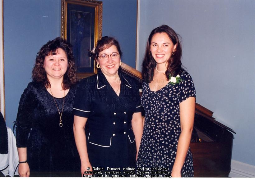 | Description: | 1997 Saskatchewan Book Awards, Maureen Bandas, Marilyn Belhumeur, and Leah Dorion. |