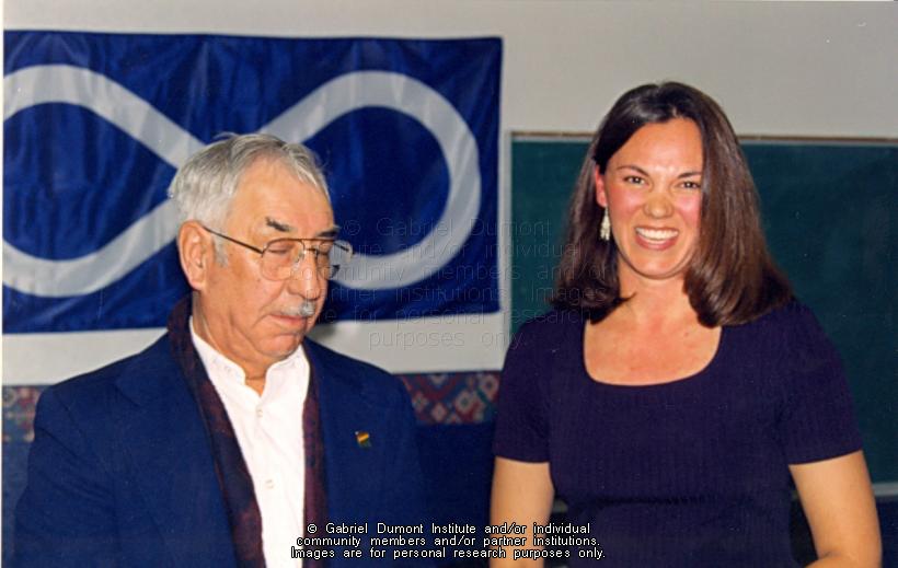 | Description: | Leah Dorion with Harold Ross at the launch of "Remembrances: Interviews with Métis Veterans" in 1998 in Regina.