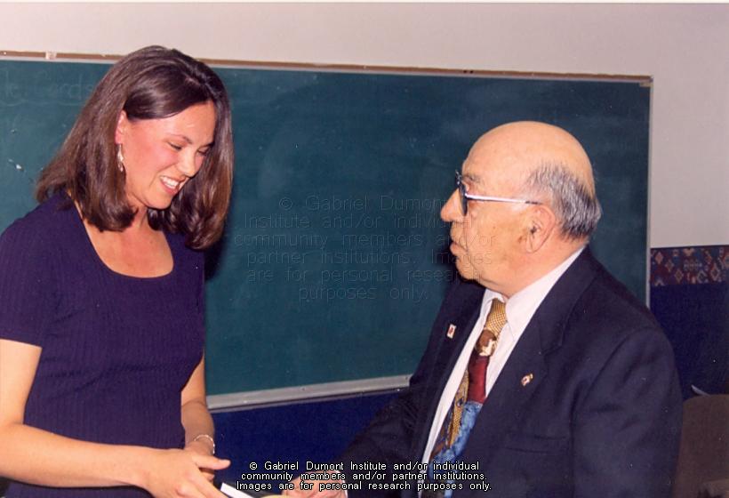 | Description: | Leah Dorion and Armand Fisher at the launch of "Remembrances: Interviews with Métis Veterans" in 1998 in Regina.
