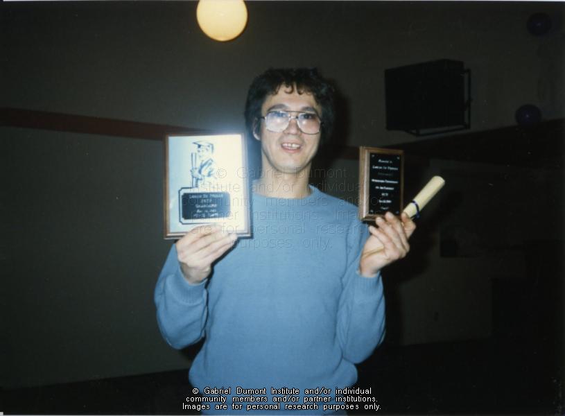 | Description: | A Gabriel Dumont Institute student receiving his diploma. |