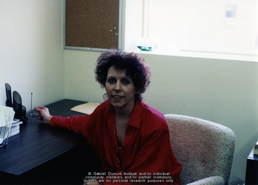 | Description: | Annie Chartier at a Gabriel Dumont Institute office. |