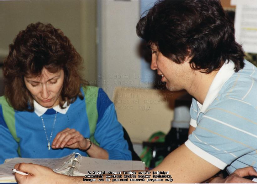 | Description: | Brian Gallager tutoring Gabriel Dumont Institute STEP student. |