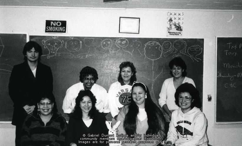 | Description: | A class photograph of a group of Gabriel Dumont Institute employees. |