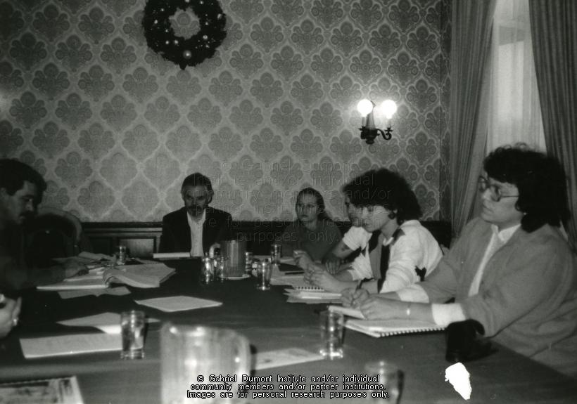 | Description: | Meeting of STEP Coordinators, Saskaton, 1987. L-R: Gordon Lobe, John Murray, Myrna Martyniuk, Greg Kotowich, Terry McPhail, and Melona Palmer. |