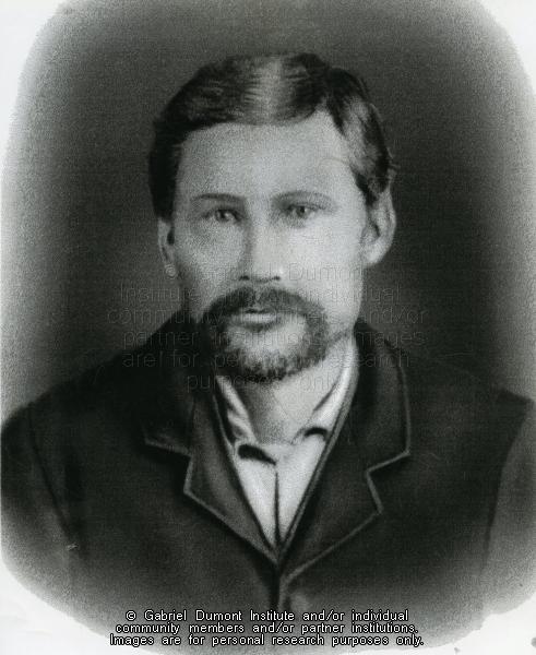 Jean-Baptiste Morin, oldest son of Cyprien Morin of Meadow Lake. Jean-Baptiste was married twice. His first wife was Marie Desjarlais. After her death he remarried to Margaret Aubichon of Green Lake. Jean-Baptiste lived from 1855-1903. After his death his second wife Margaret Aubichon married Norbert Fraser of Green Lake. This image is to be used for research purposes only. The reproduction of this image in whole or in part is strictly prohibited without the permission of the copyright holder. Copyright for this image belongs to Lawrence Arnault, and/or the person(s) in the photograph, and/or their descendants. |