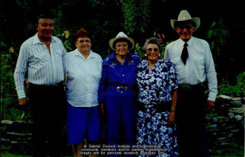 The children of Peter Hyacinthe Morin : Ernest, Lillian, Josephine, Edna and Roy. This image is to be used for research purposes only. The reproduction of this image in whole or in part is strictly prohibited without the permission of the copyright holder. Copyright for this image belongs to Lawrence Arnault, and/or the person(s) in the photograph, and/or their descendants. |