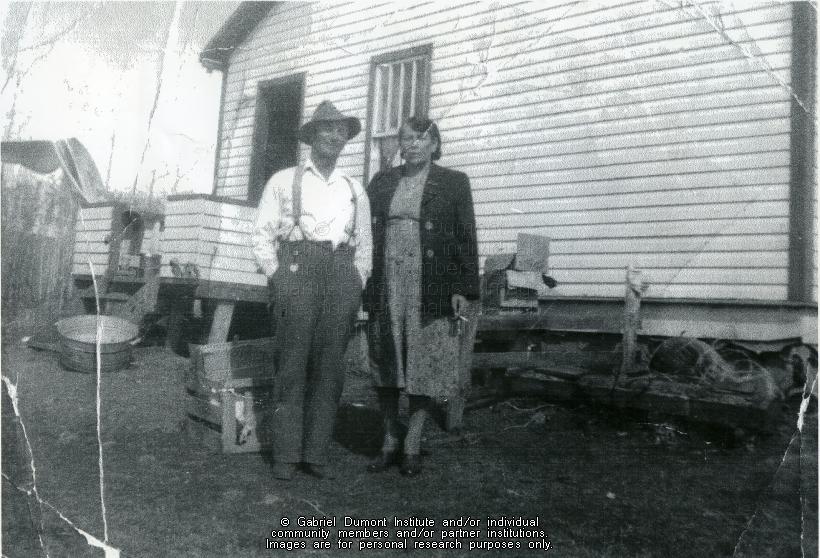 Description: William Fiddler and Vilna Fiddler (née Delaronde). This image is to be used for research purposes only. The reproduction of this image in whole or in part is strictly prohibited without the permission of the copyright holder. Copyright for this image belongs to Lawrence Arnault, and/or the person(s) in the photograph, and/or their descendants.
