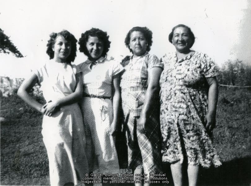 At far right is Agnes Roy, daughter of William Morin and Judille Delaronde, and the granddaughter of Raphael Morin and Betsy Cook. William was a son of Raphael Morin and was the older brother of Cyprien Morin. Agnes was married to Louis Roy of Green Lake. The three daughters from left to right are: Penny, Christine, and Rose. Rose was married to a McKay. This image is to be used for research purposes only. The reproduction of this image in whole or in part is strictly prohibited without the permission of the copyright holder. Copyright for this image belongs to Lawrence Arnault, and/or the person(s) in the photograph, and/or their descendants. |