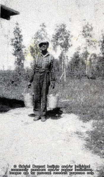 John (Tsi-coo-moo-shoom) Laliberte. This image is to be used for research purposes only. The reproduction of this image in whole or in part is strictly prohibited without the permission of the copyright holder. Copyright for this image belongs to Lawrence Arnault, and/or the person(s) in the photograph, and/or their descendants. |