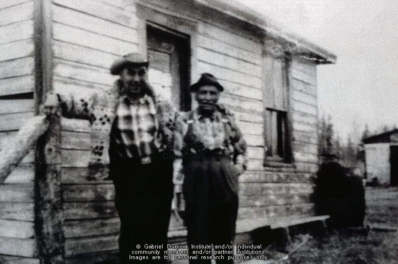 Frank Toby and Tsi Louis Vallee. Tsi Louis was a first cousin to Bella Lafleur (their mothers were sisters). This image is to be used for research purposes only. The reproduction of this image in whole or in part is strictly prohibited without the permission of the copyright holder. Copyright for this image belongs to Lawrence Arnault, and/or the person(s) in the photograph, and/or their descendants. |