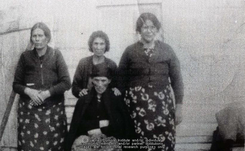 Seated is Margaret Lariviere (née Roy). Standing left to right behind her are her daughters: Adelaide Gardiner (mother of Harry Gardiner of Green Lake), Helen Kyplain, and Marie Jane Morin, wife of Ambroise. This image is to be used for research purposes only. The reproduction of this image in whole or in part is strictly prohibited without the permission of the copyright holder. Copyright for this image belongs to Lawrence Arnault, and/or the person(s) in the photograph, and/or their descendants. |