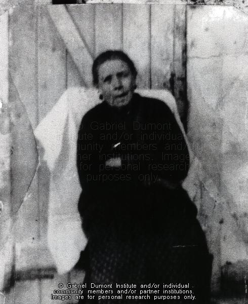 Genevieve Laliberte (née Jourdain), wife of Pierre Laliberte Jr. She was the mother of Emilien Laliberte. This image is to be used for research purposes only. The reproduction of this image in whole or in part is strictly prohibited without the permission of the copyright holder. Copyright for this image belongs to Lawrence Arnault, and/or the person(s) in the photograph, and/or their descendants. |