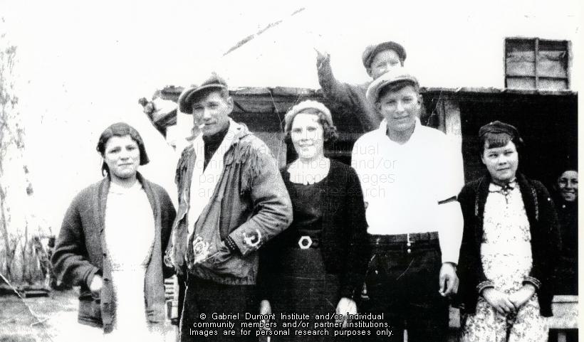 Left to right: Rosanna (Mrs Abe) Laliberte, Jules Laliberte, Elmire Laliberte and Isidore Laliberte. These are the children of Abel and Marie-Angel Laliberte. The children in the picture are unknown. This image is to be used for research purposes only. The reproduction of this image in whole or in part is strictly prohibited without the permission of the copyright holder. Copyright for this image belongs to Lawrence Arnault, and/or the person(s) in the photograph, and/or their descendants. |