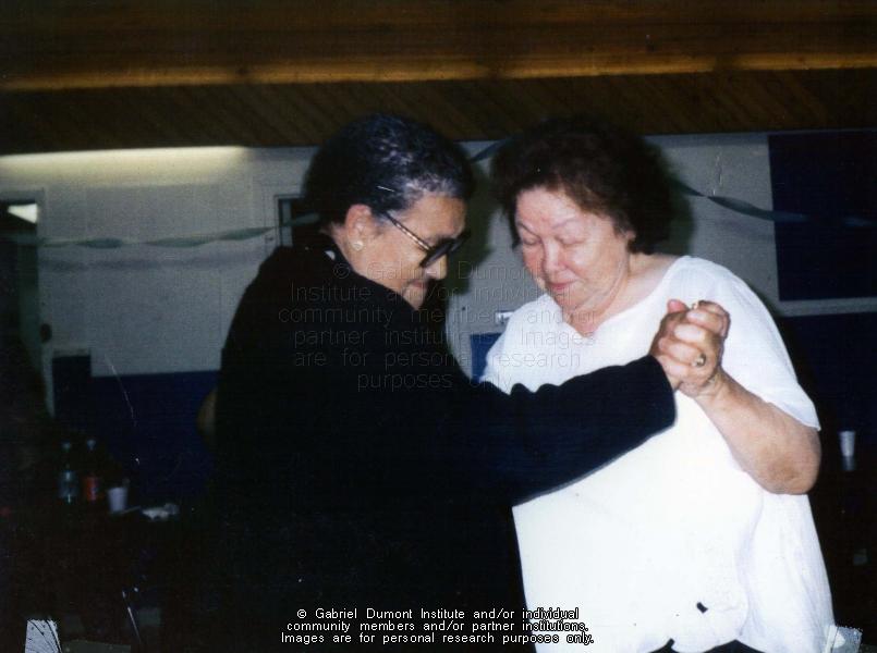 Description: Sisters Mathilda Laliberte (left) and Mary Fulton (née Laliberte) dancing. This image is to be used for research purposes only. The reproduction of this image in whole or in part is strictly prohibited without the permission of the copyright holder. Copyright for this image belongs to Lawrence Arnault, and/or the person(s) in the photograph, and/or their descendants.