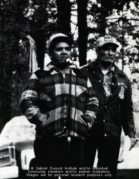 | Description: | Louis (left) and Vital Morin, sons of Felix Morin. Louis lived at Turnor Lake, while Vital lived at Île-à-la-Crosse. Photo taken at Palmbere Lake. This image is to be used for research purposes only. The reproduction of this image in whole or in part is strictly prohibited without the permission of the copyright holder. Copyright for this image belongs to Lawrence Arnault, and/or the person(s) in the photograph, and/or their descendants. |