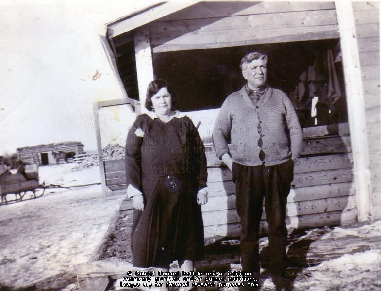 | Description: | Isadore Fiddler and his wife. This image is to be used for research purposes only. The reproduction of this image in whole or in part is strictly prohibited without the permission of the copyright holder. Copyright for this image belongs to Lawrence Arnault, and/or the person(s) in the photograph, and/or their descendants. |