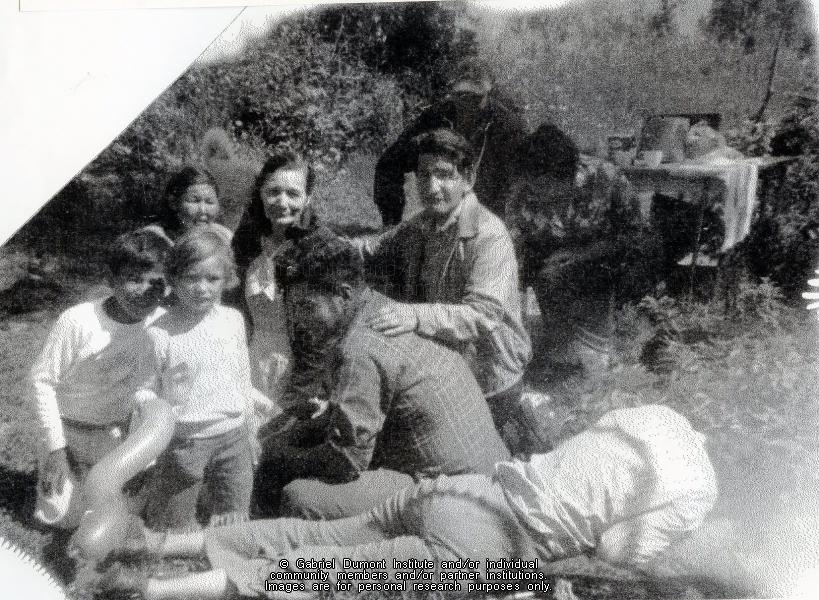 Description: The two children are the sons of Cecile McKay and Diane Seright. The five visible adults are (left to right): Marie Jacko (Mrs. Charlie McKay), Mary Gardiner, Charlie McKay, Zachary Gardiner (step-son to Mary) and Cecile (Gee-zoo) McKay. This image is to be used for research purposes only. The reproduction of this image in whole or in part is strictly prohibited without the permission of the copyright holder. Copyright for this image belongs to Lawrence Arnault, and/or the person(s) in the photograph, and/or their descendants.