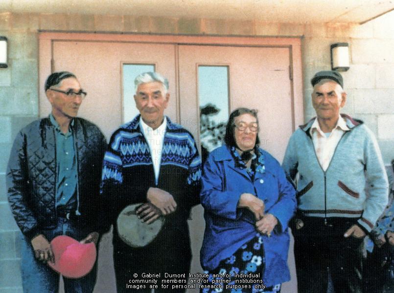 The three men are the children of Martial Desjarlais. Left to right: Alexander, Francois and his wife Flavie Durocher and Jean Marie. This image is to be used for research purposes only. The reproduction of this image in whole or in part is strictly prohibited without the permission of the copyright holder. Copyright for this image belongs to Lawrence Arnault, and/or the person(s) in the photograph, and/or their descendants. |
