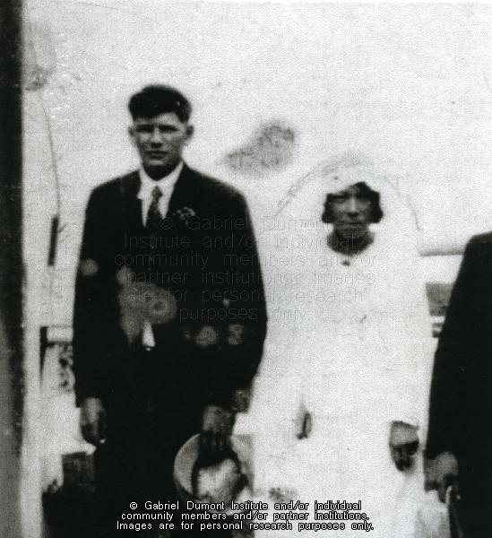 Fred and Helen Sinclair (née Laliberte). Fred was a son of George and Catherine (Kee-doo) Sinclair (née Kennedy). On 7 June 1932 he married Helen Laliberte, daughter of Clement and Aldina Laliberte (née Morin). Helen was a sister to Mathilda (Mrs. Alexander) Sinclair. This image is to be used for research purposes only. The reproduction of this image in whole or in part is strictly prohibited without the permission of the copyright holder. Copyright for this image belongs to Lawrence Arnault, and/or the person(s) in the photograph, and/or their descendants. |