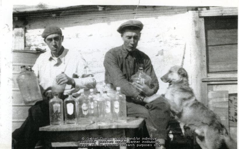 Frank Sinclair (left) and Ralph Arcand, two grandsons of La Veille Josephte (Durocher). This image is to be used for research purposes only. The reproduction of this image in whole or in part is strictly prohibited without the permission of the copyright holder. Copyright for this image belongs to Lawrence Arnault, and/or the person(s) in the photograph, and/or their descendants.  |