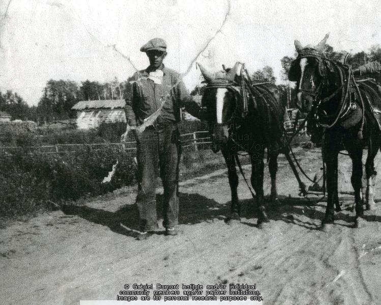 | Description: | Frank Sinclair with horses Nellie and Fly. This image is to be used for research purposes only. The reproduction of this image in whole or in part is strictly prohibited without the permission of the copyright holder. Copyright for this image belongs to Lawrence Arnault, and/or the person(s) in the photograph, and/or their descendants. |