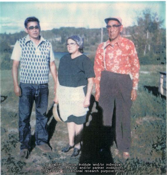 From left to right: Charlie (Skinner) Kennedy, Eva (Dsi dsin) Roy, and Oscar Roy. This image is to be used for research purposes only. The reproduction of this image in whole or in part is strictly prohibited without the permission of the copyright holder. Copyright for this image belongs to Lawrence Arnault, and/or the person(s) in the photograph, and/or their descendants. |
