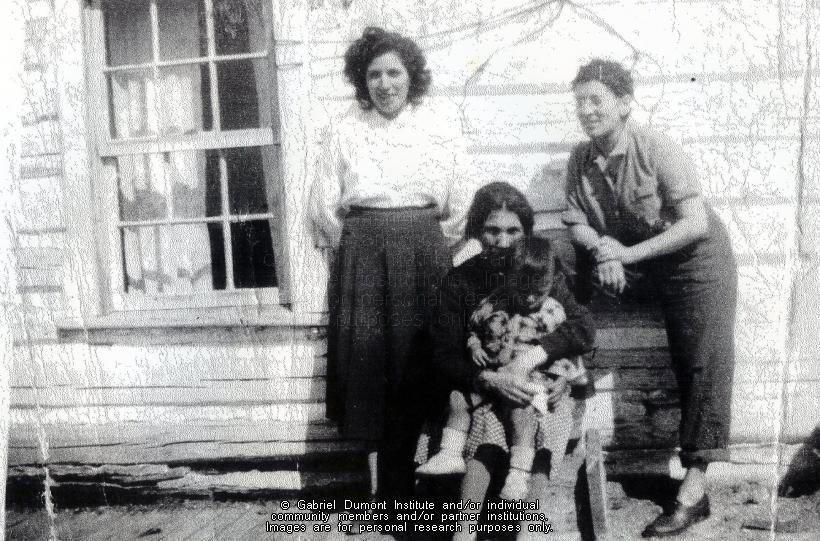 Florence, Nee-ha-lahw and Sheila Ahenekew of Ile-a-la Crosse, SK. This image is to be used for research purposes only. The reproduction of this image in whole or in part is strictly prohibited without the permission of the copyright holder. Copyright for this image belongs to Lawrence Arnault, and/or the person(s) in the photograph, and/or their descendants. |