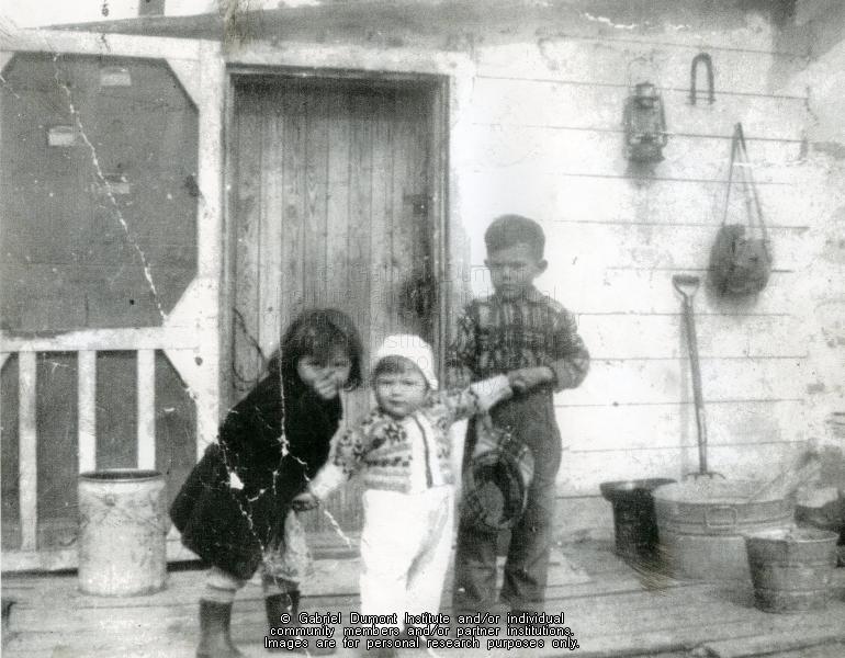 From left to right: Laura, Jimmy, and Floyd Laliberte, children of Julien and Aldinasis Laliberte. This image is to be used for research purposes only. The reproduction of this image in whole or in part is strictly prohibited without the permission of the copyright holder. Copyright for this image belongs to Lawrence Arnault, and/or the person(s) in the photograph, and/or their descendants. |