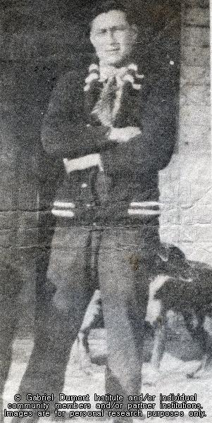 Description: Gilbert Durocher, as the name appears on the bottom of a newspaper clipping. He was the second husband of Ernestine Laliberte of Green Lake, SK. His nickname was Kah-up-sees-sit. Gilbert was the son of Basil Durocher and a brother to Alex Durocher of Green Lake, SK. This image is to be used for research purposes only. The reproduction of this image in whole or in part is strictly prohibited without the permission of the copyright holder. Copyright for this image belongs to Lawrence Arnault, and/or the person(s) in the photograph, and/or their descendants.