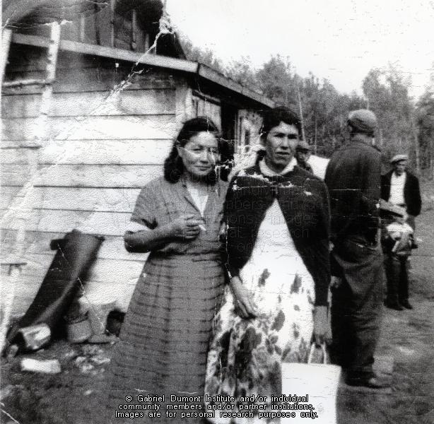 Description: Claudia (nee Kennedy) Laliberte and Theresa Yew. Theresa was the daughter of Prosper Billy Boy Macallum. This image is to be used for research purposes only. The reproduction of this image in whole or in part is strictly prohibited without the permission of the copyright holder. Copyright for this image belongs to Lawrence Arnault, and/or the person(s) in the photograph, and/or their descendants.