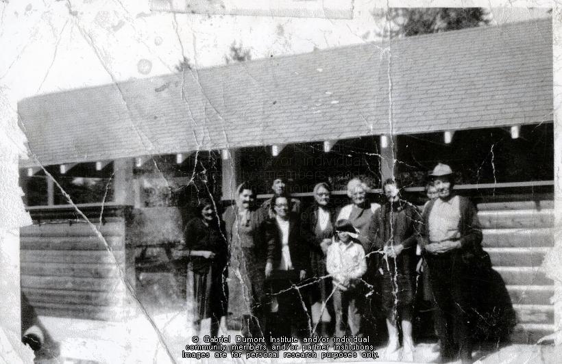 Description: Left to right: Francoise Lafond, Marie Angel Laliberte, Leon Morin, Virginia Morin, Octavie, Isabel Bishop, Betsy and Abel. This image is to be used for research purposes only. The reproduction of this image in whole or in part is strictly prohibited without the permission of the copyright holder. Copyright for this image belongs to Lawrence Arnault, and/or the person(s) in the photograph, and/or their descendants.
