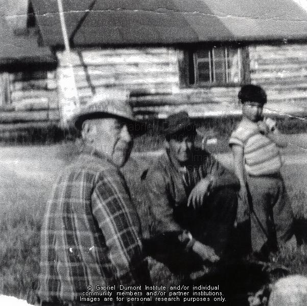 Joe Petit (1869-1969), Bunny Lemairgre and Myles Petit of Buffalo Narrows, SK. This image is to be used for research purposes only. The reproduction of this image in whole or in part is strictly prohibited without the permission of the copyright holder. Copyright for this image belongs to Lawrence Arnault, and/or the person(s) in the photograph, and/or their descendants. |