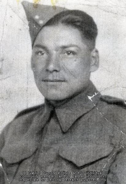 Description: Joseph George Merasty, WWII. This image is to be used for research purposes only. The reproduction of this image in whole or in part is strictly prohibited without the permission of the copyright holder. Copyright for this image belongs to Lawrence Arnault, and/or the person(s) in the photograph, and/or their descendants.