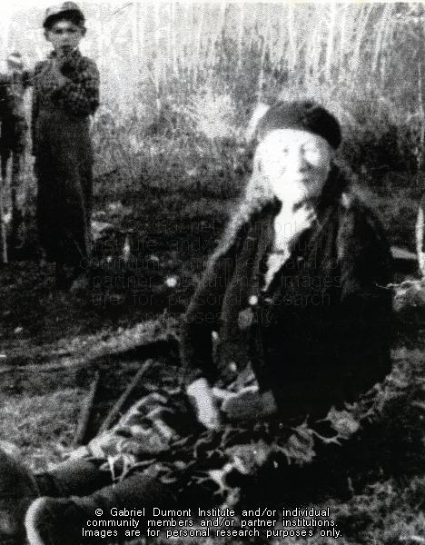 Sarah Desjarlais with her grandson Stanley Morin. Stanley was the son of Cyril and Georgina. This image is to be used for research purposes only. The reproduction of this image in whole or in part is strictly prohibited without the permission of the copyright holder. Copyright for this image belongs to Lawrence Arnault, and/or the person(s) in the photograph, and/or their descendants. |