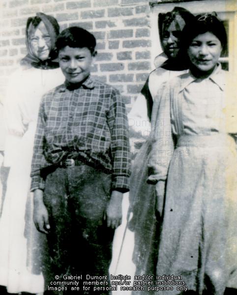 Joe and Cecile Merasty at the residential school in Beauval, SK. This image is to be used for research purposes only. The reproduction of this image in whole or in part is strictly prohibited without the permission of the copyright holder. Copyright for this image belongs to Lawrence Arnault, and/or the person(s) in the photograph, and/or their descendants. |