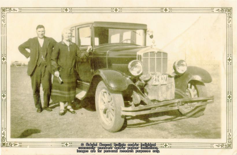 Wallace and Betsy Norman standing beside their car with 1930 Albert plates on it. This image is to be used for research purposes only. The reproduction of this image in whole or in part is strictly prohibited without the permission of the copyright holder. Copyright for this image belongs to Lawrence Arnault, and/or the person(s) in the photograph, and/or their descendants. |