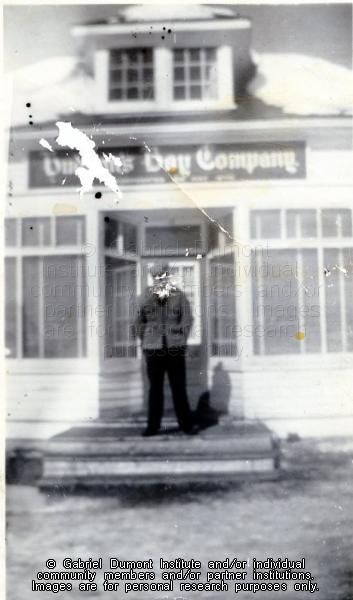 | Description: | A man standing in front of the Hudson’s Bay Company store in Green Lake, SK. This image is to be used for research purposes only. The reproduction of this image in whole or in part is strictly prohibited without the permission of the copyright holder. Copyright for this image belongs to Lawrence Arnault, and/or the person(s) in the photograph, and/or their descendants. |