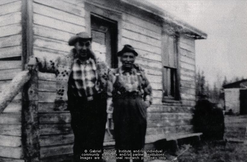 Frank Toby and Tsi Louis Vallee. Tsi Louis was a first cousin to Bella Lafleur as their mothers were sisters. This image is to be used for research purposes only. The reproduction of this image in whole or in part is strictly prohibited without the permission of the copyright holder. Copyright for this image belongs to Lawrence Arnault, and/or the person(s) in the photograph, and/or their descendants. |
