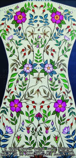 “The Great Métis of My Time project is a series of nine paintings that through exhibition are intended to bring awareness of Métis history, Métis traditional art and Métis contemporary issues to a public audience. The paintings, produced in acrylic on canvas, portray the stories and the lives of five prominent Métis individuals whose determination to seek justice for Métis rights have changed the course of history for the Métis Nation in modern times.” For further background information about these paintings, please visit the artist’s website at www.christibelcourt.com. Coat for Harry, 2006 24” x 48” Acrylic on canvas This painting is of Red River coat which the artist imagined would have been ideal for Métis activist Harry Daniels. Flamboyant and richly adorned with the wild rose, Harry Daniel’s favourite plant, this coat was as the artist states, “the jacket he never got.” |