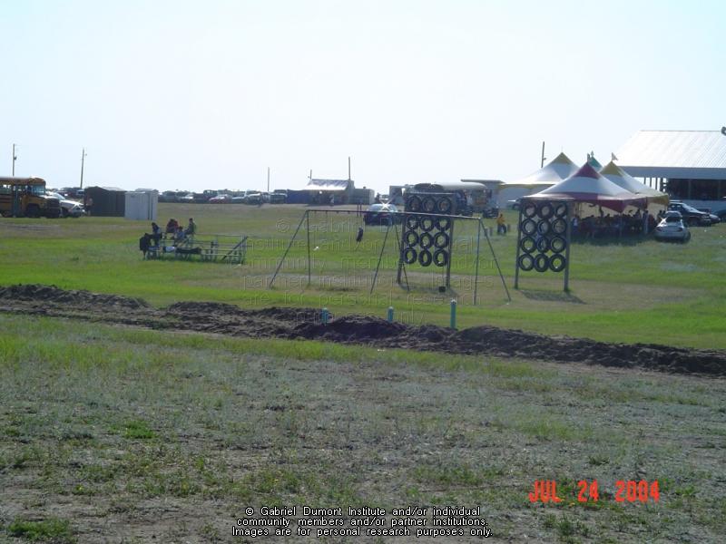 | Description: | Grounds, Back to Batoche, 2004 including swing set and tents.