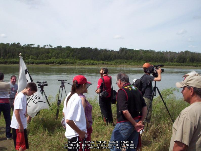 | Description: | Group waiting for Métis Canoe Expedition to arrive on the South Saskatchewan River, Back to Batoche, 2005.