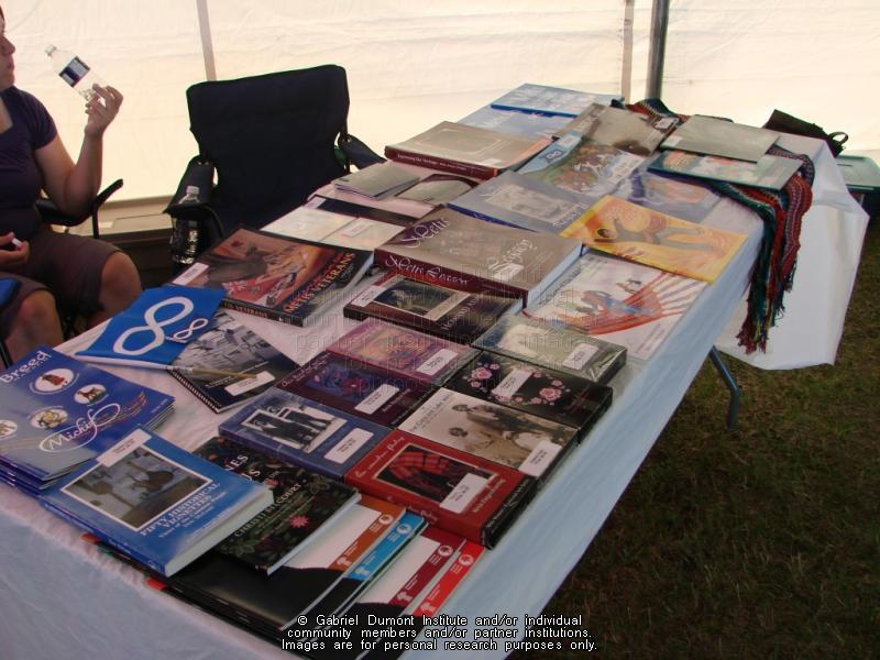 | Description: | Gabriel Dumont Institute display table at Back to Batoche, 2008.