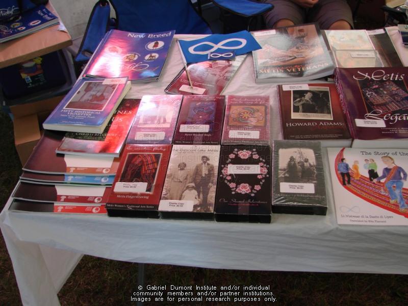 | Description: | Gabriel Dumont Institute display table at Back to Batoche, 2008.