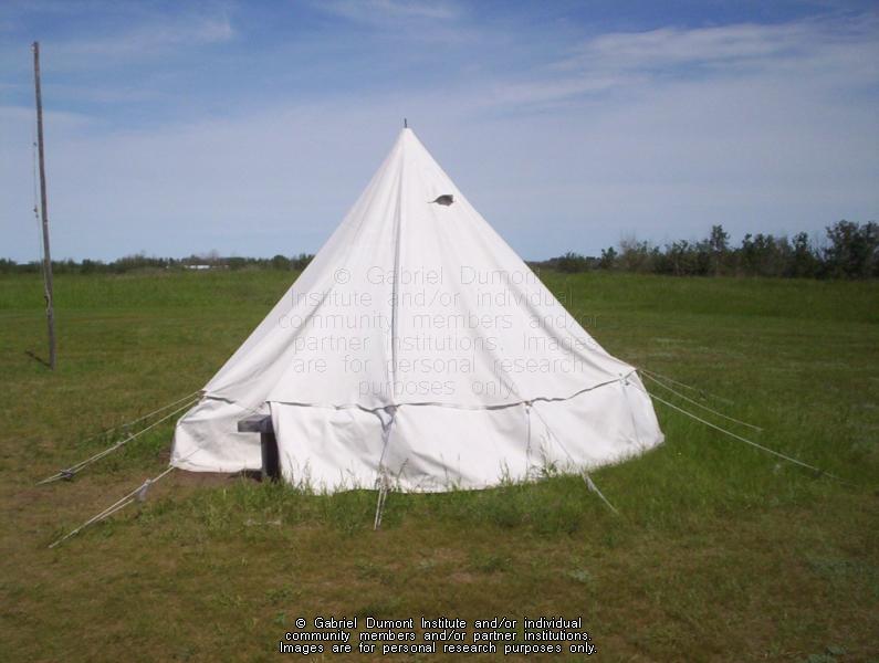 Tent in zareba area in Batoche National Historic Site. Image taken at the Aboriginal Literacy Festival, 2005. |