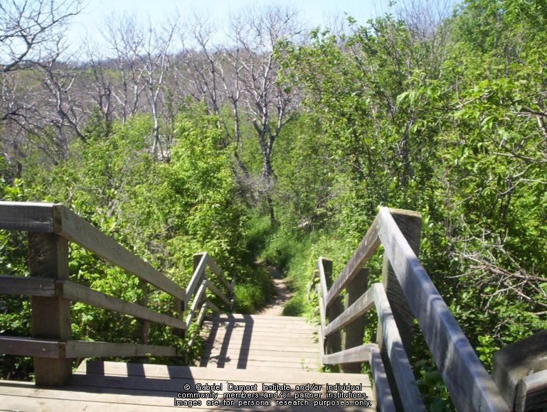 Walking trail on Batoche National Historic Site. Image taken during the Aboriginal Literacy Festival, 2005. |