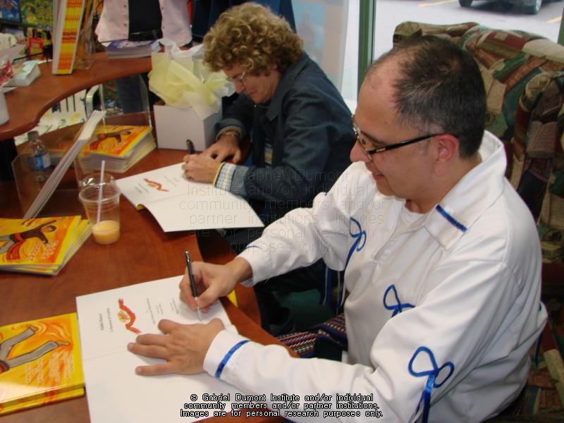 Anne Patton and Wilfred Burton signing copies of Fiddle Dancer at the Fiddle Dancer book launch at the Book & Brier Patch, Regina, October 2007. |