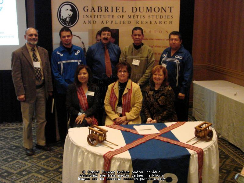 University representatives, Institute senior management and board members and Elder at the Gabriel Dumont Institute 2007 Annual General Meeting, Saskatoon. |