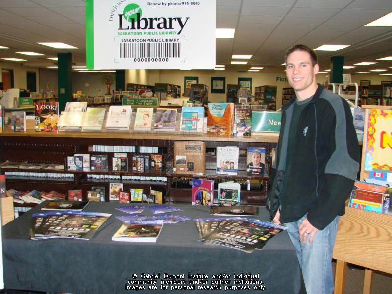 | Description: | David Morin at Stories of Our People launch at the Carlyle King Branch, Saskatoon Public Library, October 2008. |